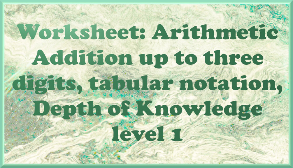 Worksheet: Addition up to three digits, tabular notation, Depth of Knowledge level 1